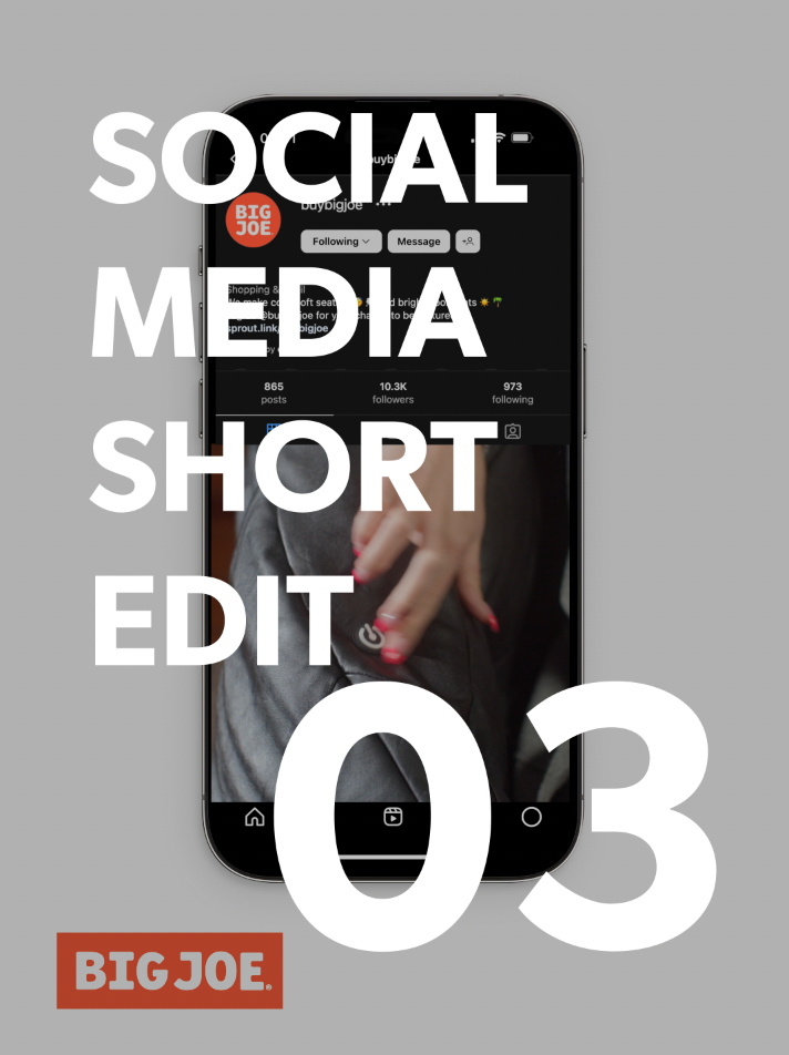 I created this set of lifestyle ads to help Big Joe market their “Milano with Vibe” on all social media channels. One of the big keys I brought to the project was the idea that we should start off the ads with a bang (literally). So we used some visual effects have the Milano magically appear with a puff of smoke. The idea is to create some sort of “jolt” that causes the average viewer to pause their endless social media scroll.